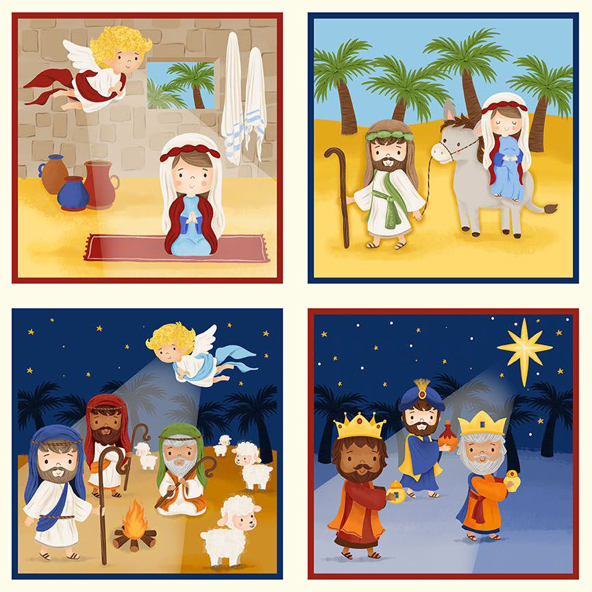 Blank Quilting Away In A Manger 4187 77 Blue Nativity Blocks 24" PANEL By The PANEL (Not Strictly By The Yard)