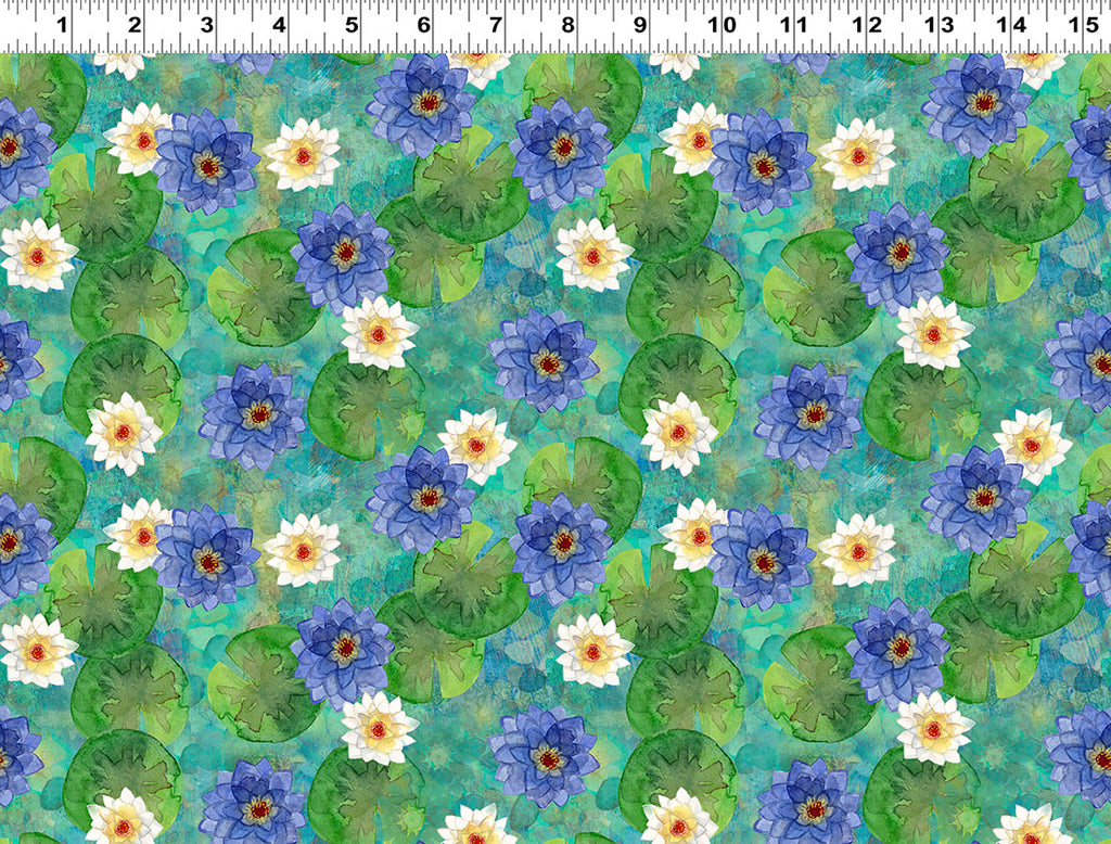 Clothworks Lily Pond Y4623 104 Teal Mixed Lilies By The Yard