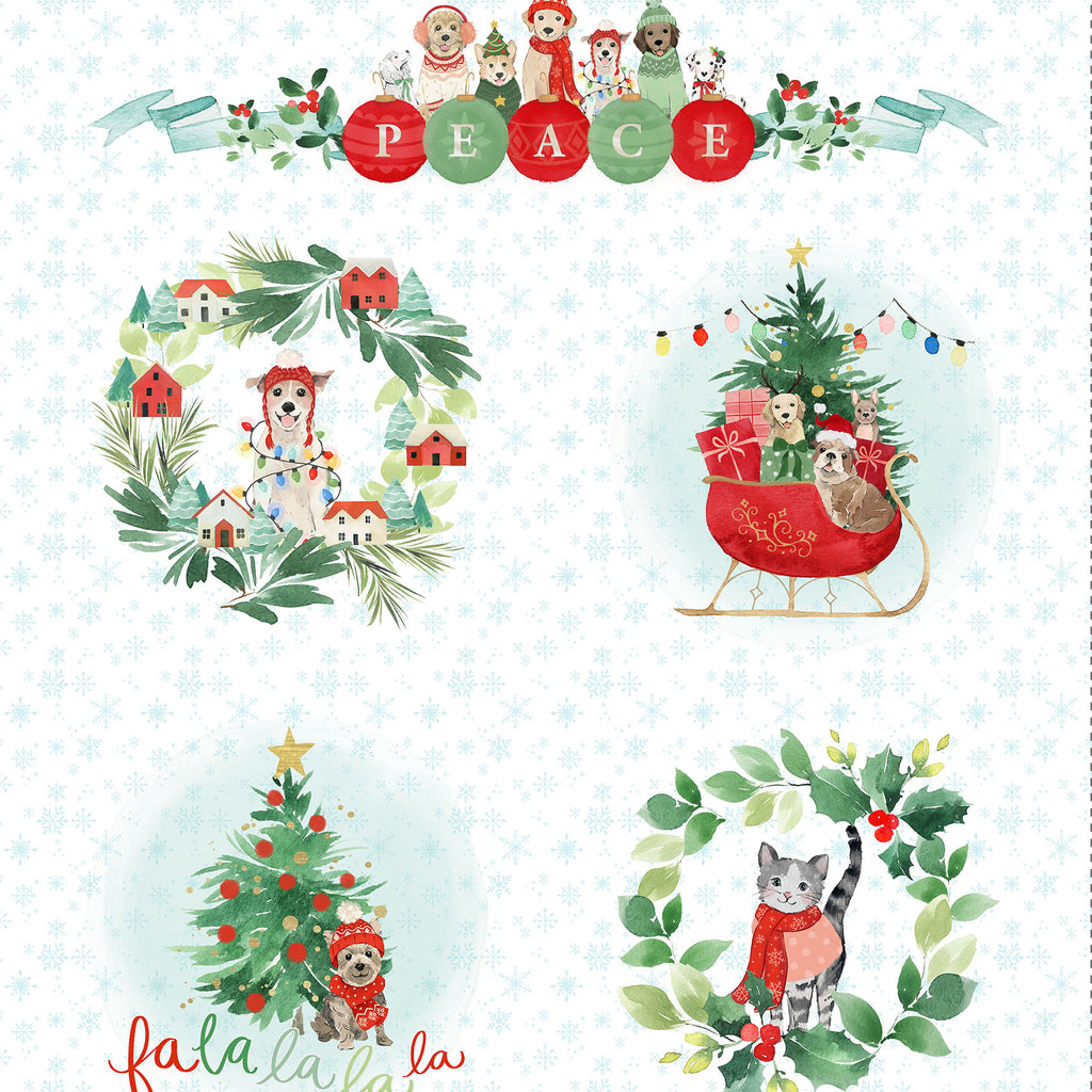 Clothworks Digital Santa Paws Y4427 1 White 24" PANEL By The PANEL (Not Strictly By The Yard)