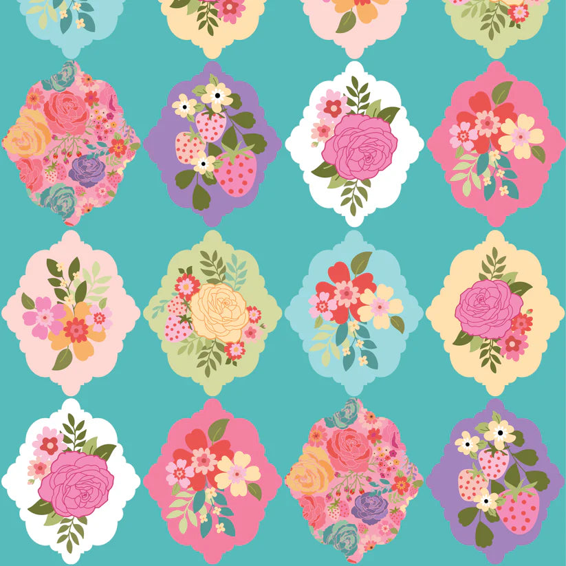 Poppie Cotton Calico Cowgirls CW24804 Wallpaper Roses Teal By The Yard