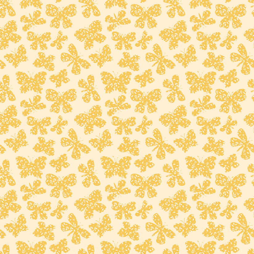Poppie Cotton Painted Blossoms PB24654 Scattered Butterflies Yellow By The Yard