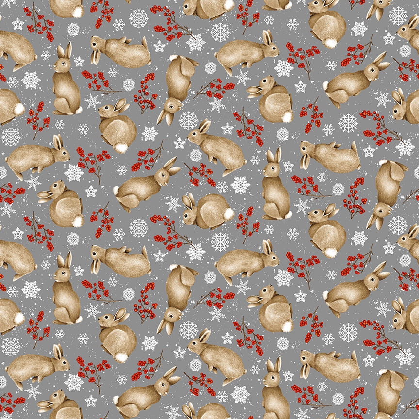 Henry Glass & Co. Snow Crew 1293 90 Gray Tossed Bunnies By The Yard