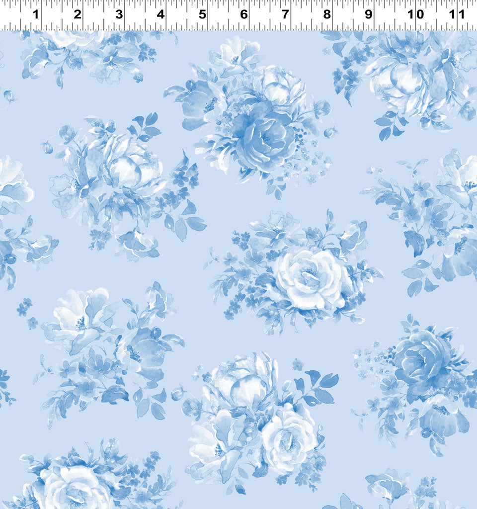 Clothworks Americana Y4772 87 Light Denim Tossed Bouquets By The Yard