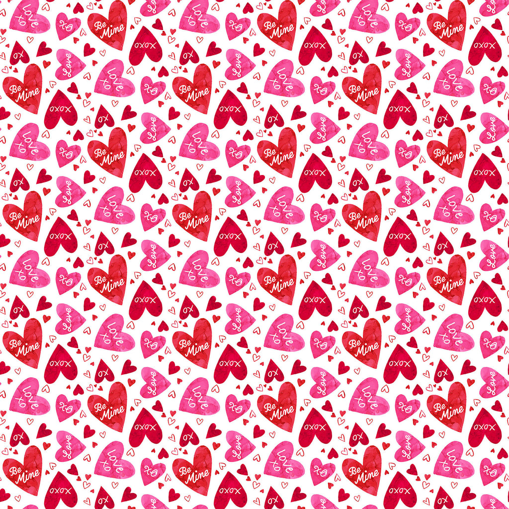 Northcott Forever Love DP28667 10 White Multi Large Hearts By The Yard