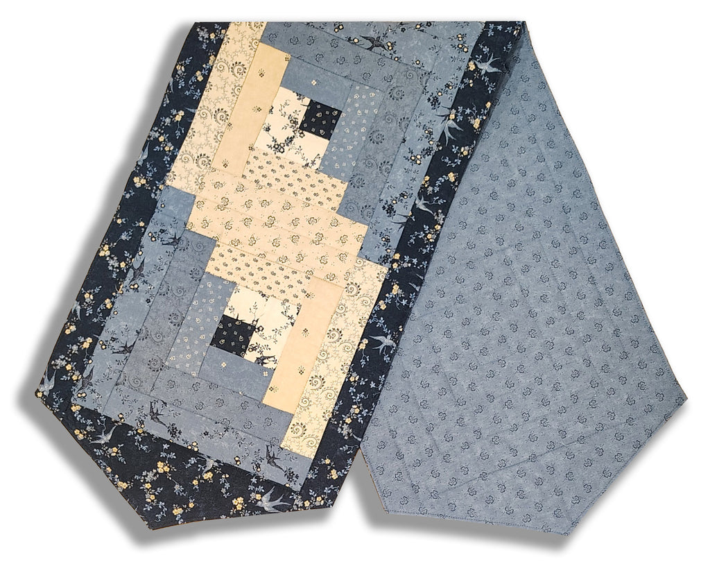 Fully FINISHED Log Cabin Table Runner - Moda - Bluebird's Nest Light Blue
