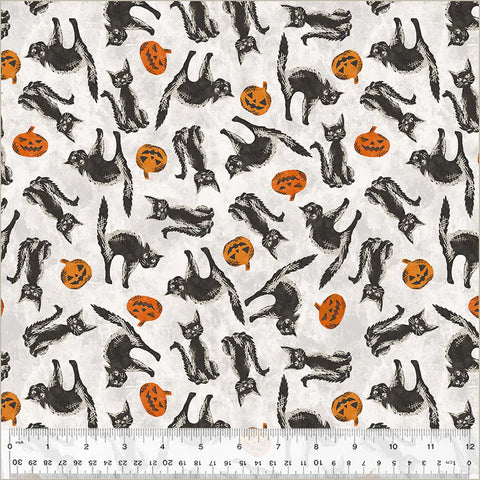 Free Spirit Spooky Cute Halloween PWMY001 White Cat Scatter By The Yard