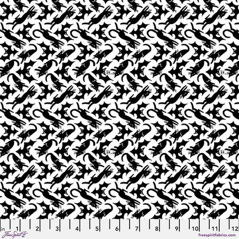 Free Spirit Spooky Cute Halloween PWMY005 Black Ghost Cluster By The Yard