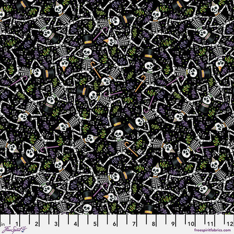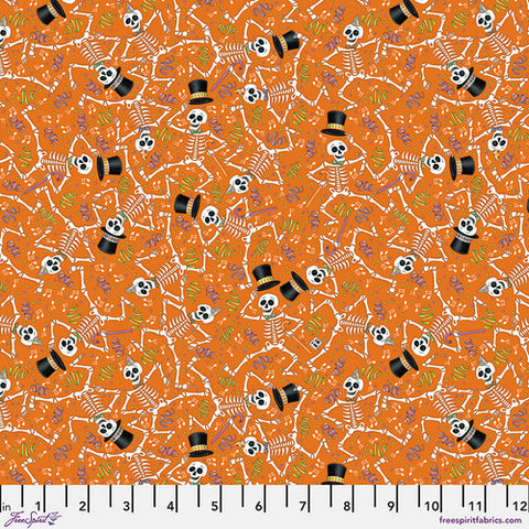 Free Spirit Spooky Cute Halloween PWMY008 Orange Dancing Skeletons By The Yard