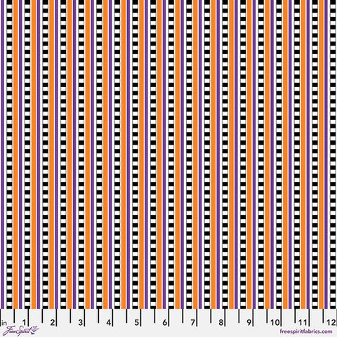 Free Spirit Spooky Cute Halloween PWMY009 Multi Halloween Check Stripe By The Yard