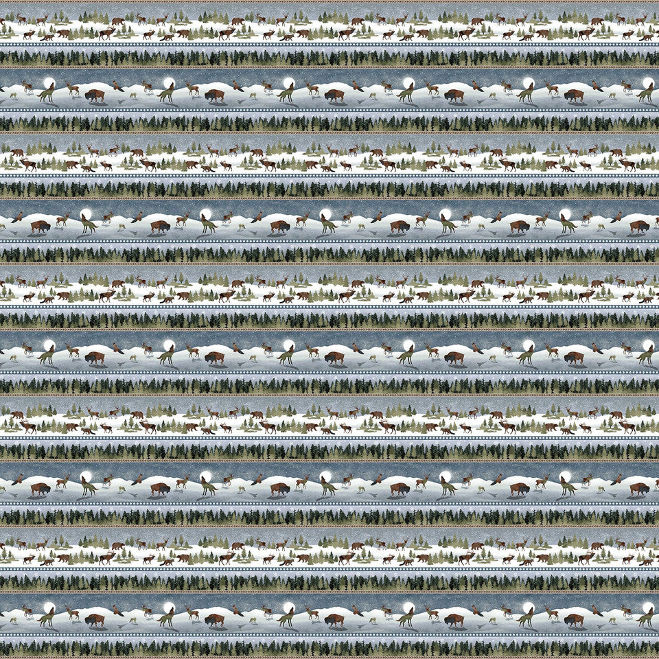 Henry Glass & Co. Moonlit Stroll 1282 63 Multi Scenic Animal Novelty Stripe By The Yard