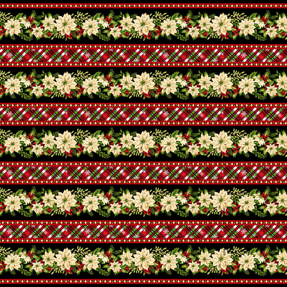 Henry Glass & Co. Peace On Earth 3268 99 Black Floral Border Stripe By The Yard