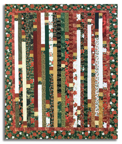 Hoffman Metallic Pre-Cut 12 Block Log Cabin Quilt Kit - Blooming Holidays