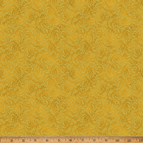 Hoffman Metallic - Blooming Holidays X7790 47G Gold/Gold Scrollwork By The Yard