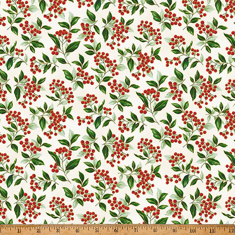 Hoffman Metallic - Blooming Holidays X7791 20G Natural/Gold Holly By The Yard