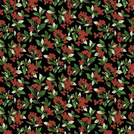 Hoffman Metallic - Blooming Holidays X7791 4G Black/Gold Holly By The Yard