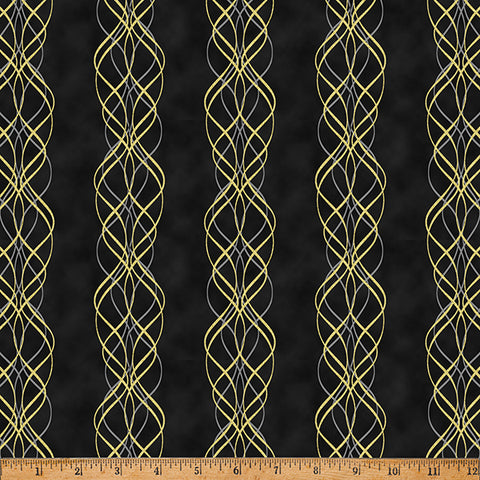 Hoffman Metallic - Blooming Holidays X7792 4G Black/Gold Waving Stripe By The Yard