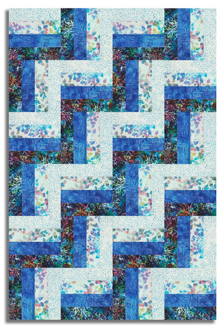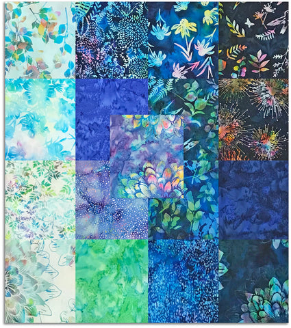 Hoffman Batik Pre-Cut 24 Block Rail Fence Quilt Kit - Water Lily