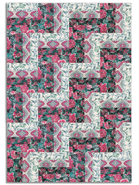 Benartex Pre-Cut 24 Block Rail Fence Quilt Kit - Winterberry Floral
