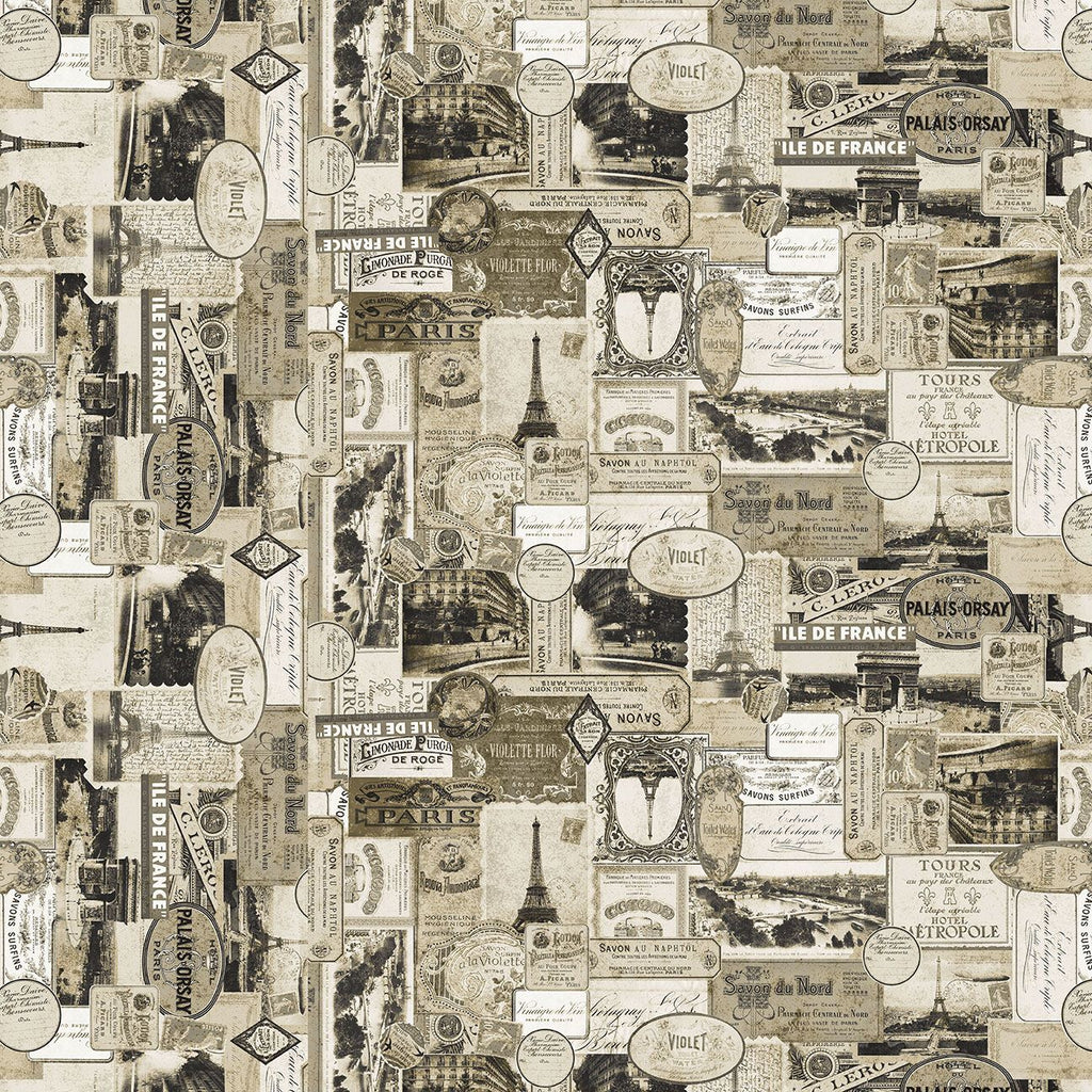 Blank Quilting Digital Paris Nights 4110 30 Parchment Collage By The Yard