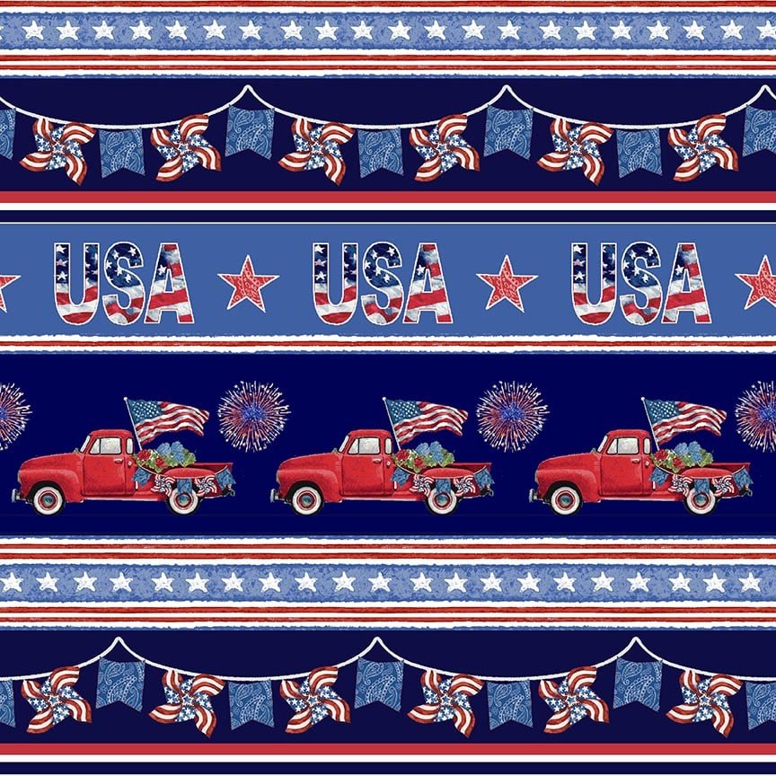 Henry Glass & Co. Wings Of Freedom 1542 78 Blue Multi Border Stripe By The Yard