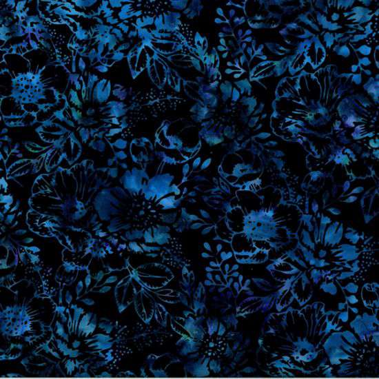 Hoffman Bali Batik U2451 215 Black/Blue Fresh Flowers By The Yard