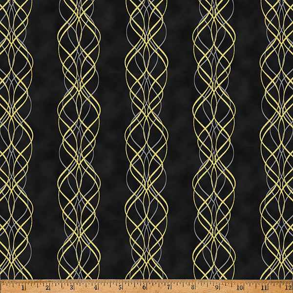 Hoffman Metallic - Blooming Holidays X7792 4G Black/Gold Waving Stripe By The Yard