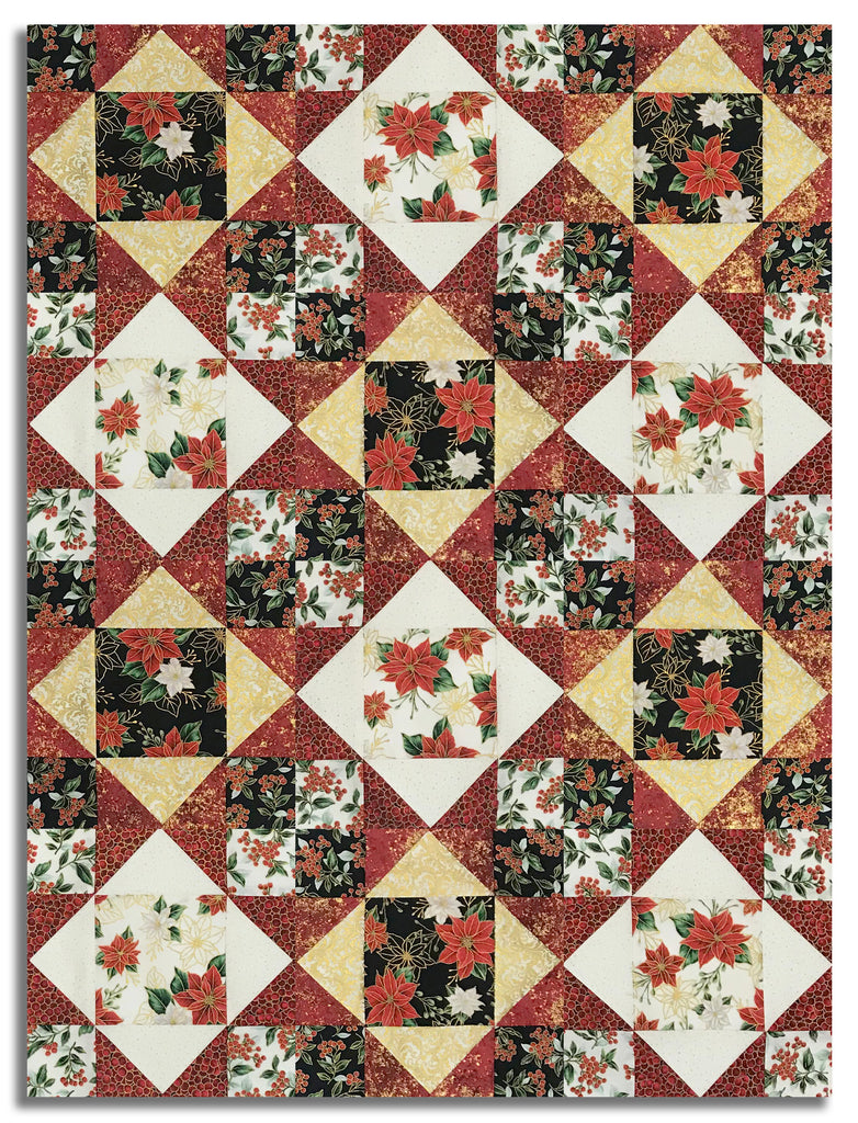 Hoffman Metallic Pre-Cut 12 Block King's Crown Quilt Kit - Blooming Holidays
