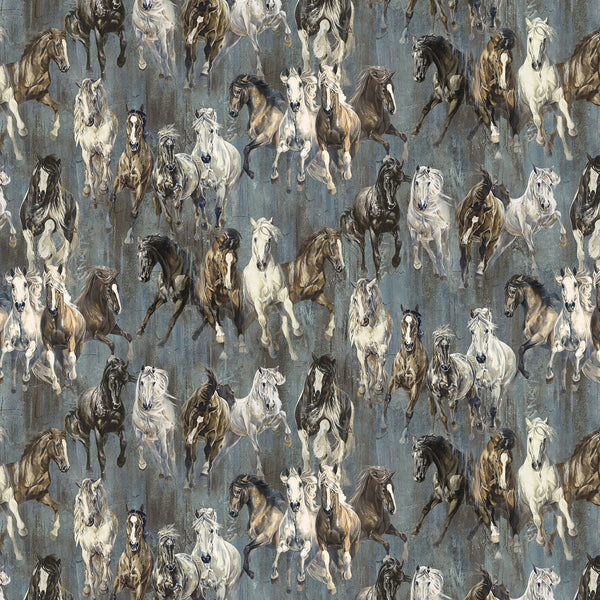 Northcott Digital - Pedigree DP28025 98 Charcoal Multi Horses By The Yard