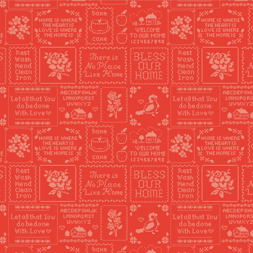 Poppie Cotton Home Sweet Home VR24462 Cross Stitch Red By The Yard