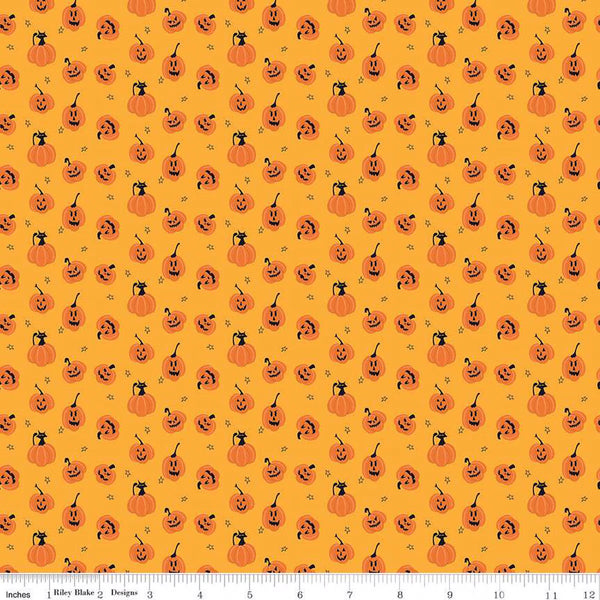 Riley Blake Beggar's Night C14505 Gold Pumpkins Bones By The Yard