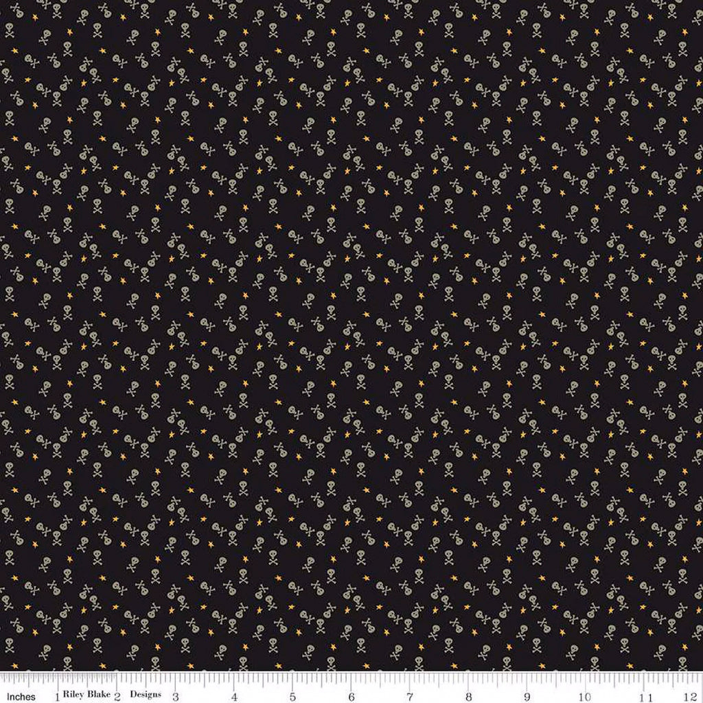Riley Blake Beggar's Night C14508 Black Skulls By The Yard
