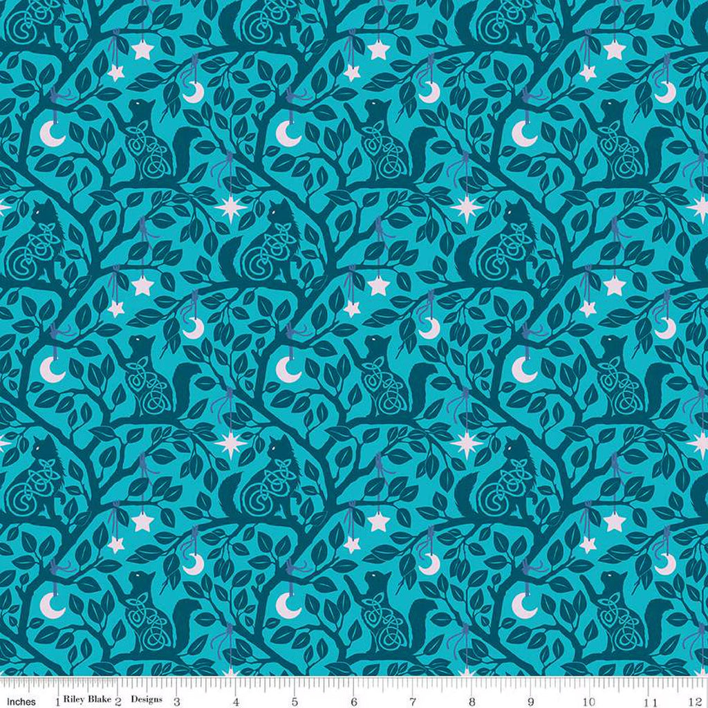 Riley Blake Celtic Cats CD16582 Teal Forest Cats By The Yard