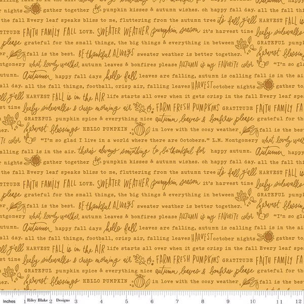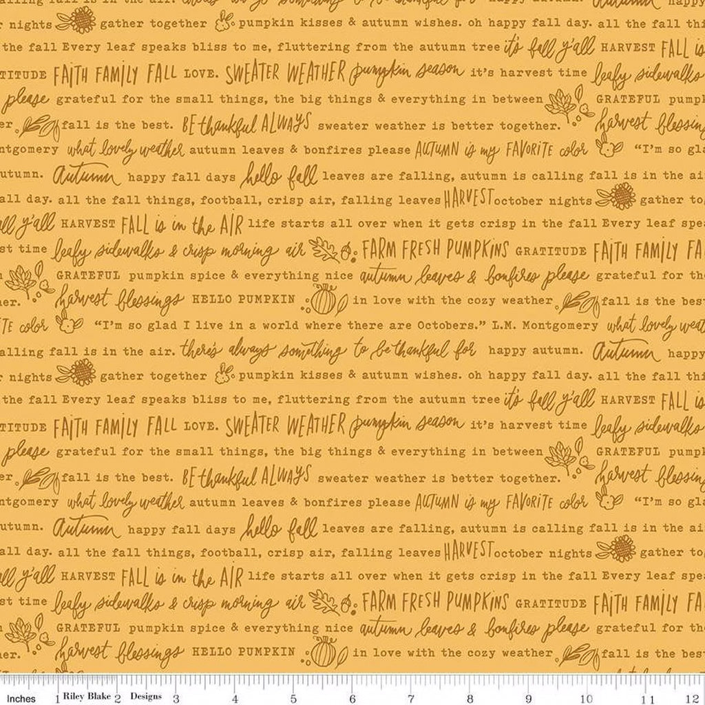 Riley Blake Happy Fall Days C16342 Gold Autumn Words By The Yard