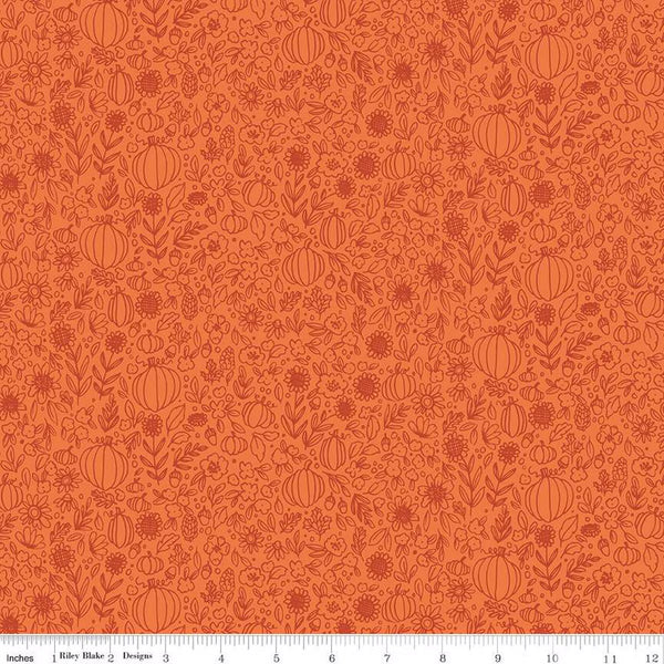 Riley Blake Happy Fall Days C16344 Orange Floral Outline By The Yard