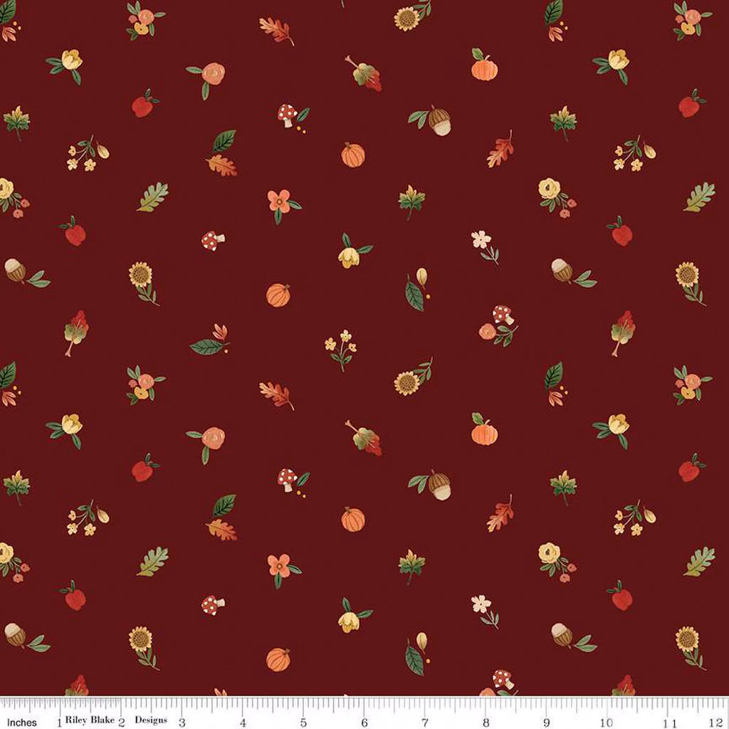 Riley Blake Happy Fall Days C16345 Maroon Fall Things By The Yard
