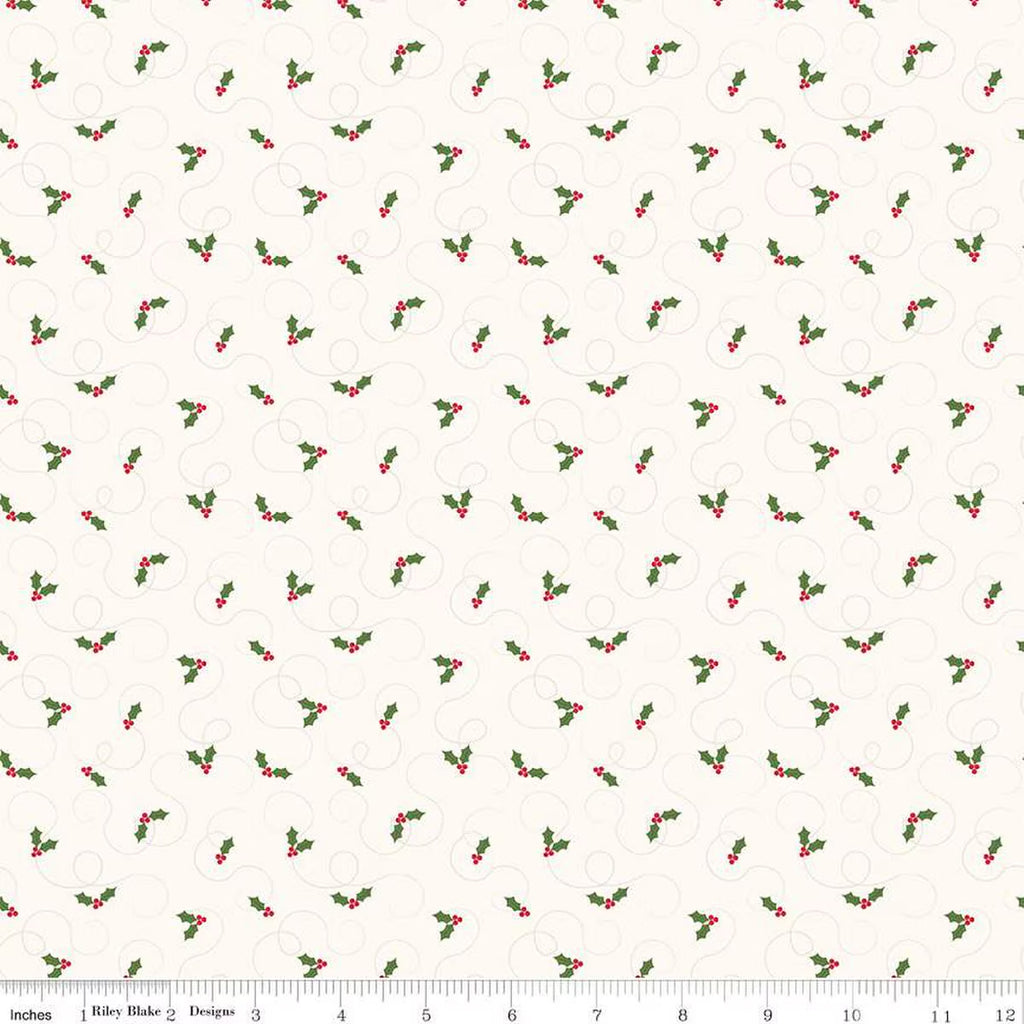 Riley Blake More Christmas Wishes 16554 White Holly By The Yard