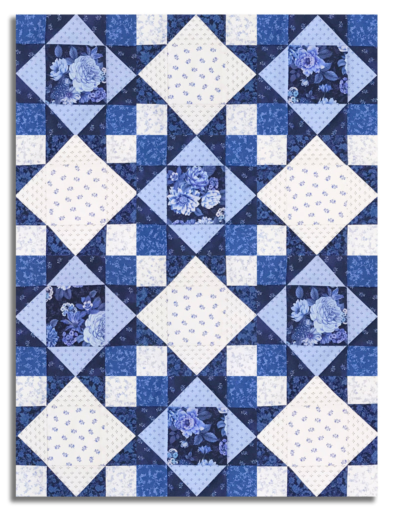 Windham Pre-Cut 12 Block King's Crown Quilt Kit - China Blue